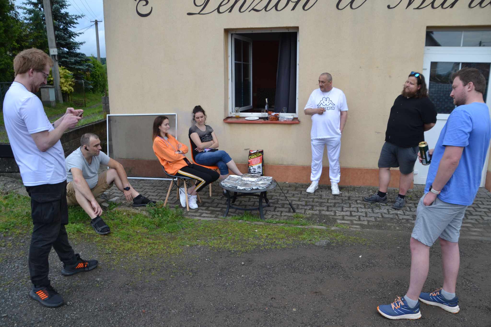 Počasí nám víceméně nepřálo celý pátek, kdy v době příjezdu začali bouřky a s krátkou pauzou odpoledne, nám trvaly celý den. Díku menší pauze se alespoň povedlo zapálit gril, ovšem než bylo jídlo hotovo, tak musel být přesunut pod stříšku u vchodu do penzionu.