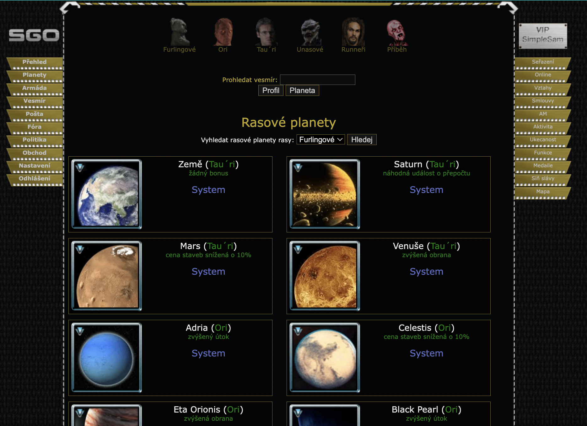 Ale teď už pojďme k tématu dnešního dne a to jsou rasové planety.